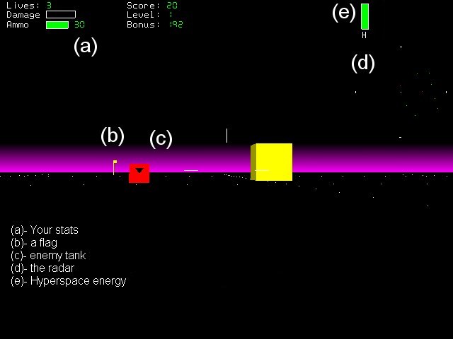 You control a tank in a dark cyberspace world. There's lots of games to play, such as